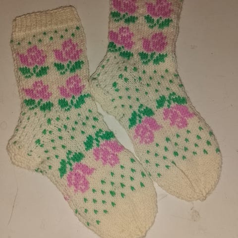 Villasukat 7 veljestä langasta. Varren mitta 35 cm ja jalkaterä 25.5 cm. Postikulut tarvittaessa 6e s-kokoisessa paketissa tai vaihtoehtoisesti Toridiilin kautta.