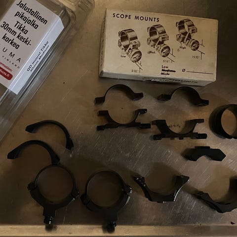 Ylimääräiseksi jäänyt Konuksen 50 mm kiikaritähtäimen pidike kiskoon. Tuote on uusi. Konuksen tuotenumero 7242.
