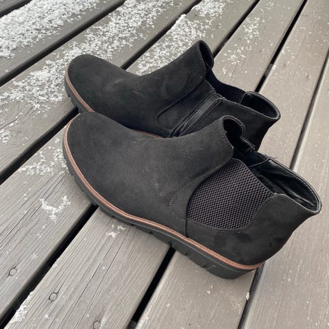 Uudet vain jalkaan testailtu. Sivulla vetoketju, sisällä vuori. Sisämitta n. 27.5 cm hankala mitata, mutta omaan 27 cm jalkaan oikein sopivat.