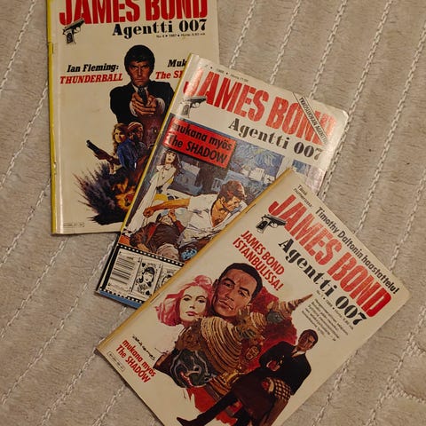 Hakusanat: retro, suomenkielinen, vanha, james bond, luvun, agentti 007, luku, octopussy, lehti, agentti, klassikko, sarjakuvat, elokuva, viihde, Paketoitava, kulttuuri, seikkailu, 1970-luku, keräily, 1980-luku, antiikki, vintage huonekalut, vintage, keräilykohde