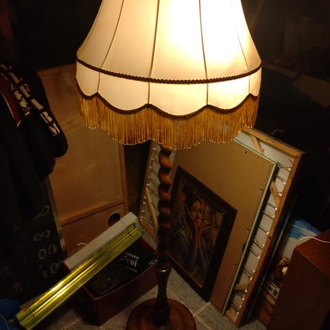 Hakusanat: varjostin, metallirunko, musta, beige, lattiavalaisin, funktionaalinen, toimiva, valaisinpari, minimalistinen, antiikki, naarmut, vintage, vintage huonekalut, retro, kuluma, vanha, luvun, sisustus, luku