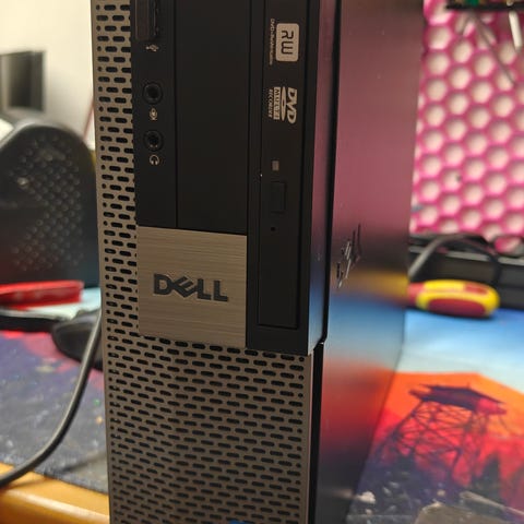 Laatulaite, josta puuttuu muistit ja kovalevy. Mukaan virtakaapeli ja koneen oma CD-asema, joka puuttuu kuvasta.