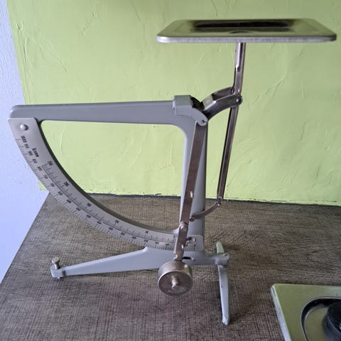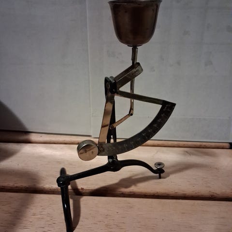 Vanha pieni kirjevaaka. Voi punnita aina 50g asti. Vaa'an paino puuttuu ja sen vuoksi punnitsemiset eivät onnistu. Myydään korjattavaksi tai koriste-esineeksi.