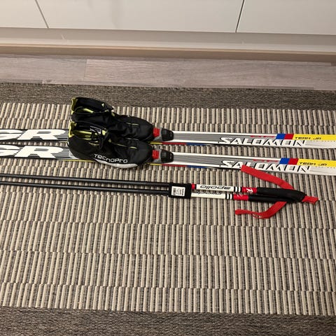 Atomic sukset joissa nnn side 148 cm. Monot alpina 33 tai karhu 34. Sauvat mukaan. Hyvät välineet koululaisille. Hinta yksillä monoilla 75 euroa.