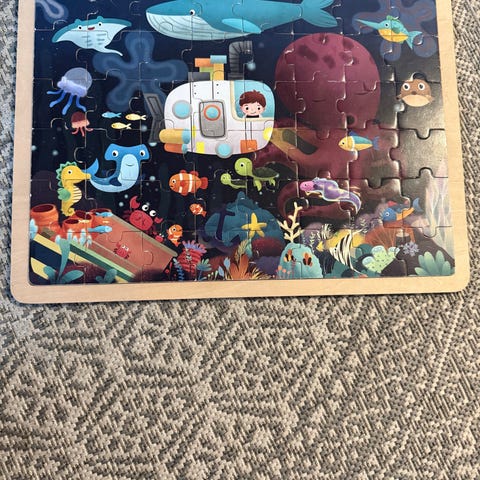 Goula magneettinen kalastuspalapeli lapsille. Puinen pelialusta, jossa on värikkäitä mereneläinpalasia, kuten kaloja, tähti ja mustekala. Palat nostetaan ja siirretään magneettisella onkivavalla. Soveltuu hienomotoriikan ja hahmottamisen harjoitteluun pienille lapsille.