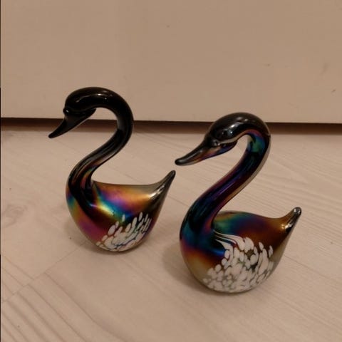 Sormusjoutsen korkeus 11,5cm ja pituus noin 10cm. Ehjä, kuvien mukainen kunto.