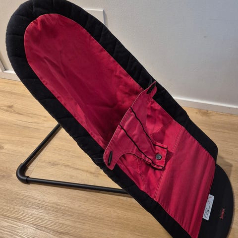 Baby Björn sitteri kahdella päällisellä: Beige alkuperäinen ja vaalean harmaa (musta alapuoli) Rinnallasi -päällinen irrotettavalla rusetti koristeella.