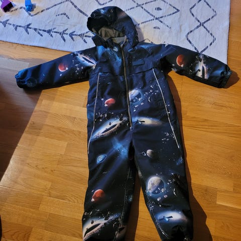 Molon toppahaalari. Ollut varahaalarina, vähällä käytöllä. Toisen heijastimen vieressä lahkeessa jokin haalea tahra, kts lisäkuva. Jalkalenksut löytyy. Heijastin nauhoissa kulumaa jalkojen osissa, muutoin aika hyvässä kunnossa. Ehjä ja hyvä haalari seuraavalle.