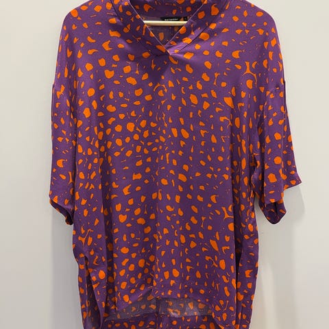 Marimekon vaaleansininen kauluspaita jokapoika kuosilla. Suunnittelija Ritva Falla. Koko S.