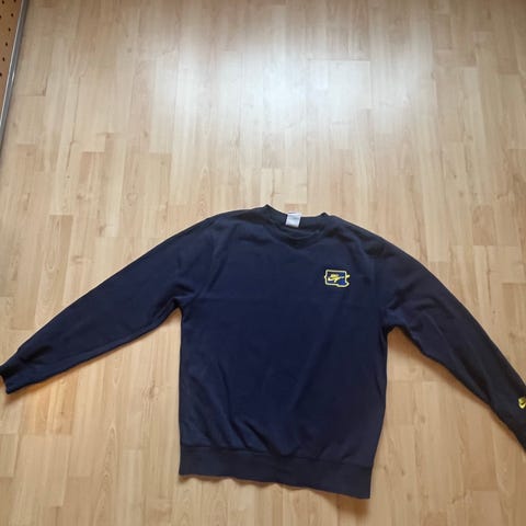Nike miesten collegepaita, koko M. Materiaalina puuvilla. Paidassa on monivärinen kuosi, jossa tummansininen pohjaväri ja kontrastiväriset raidat edessä ja takana. Mallissa on pitkät hihat ja puolivetoketju kauluksessa. Soveltuu arkikäyttöön ja vapaa-aikaan.
