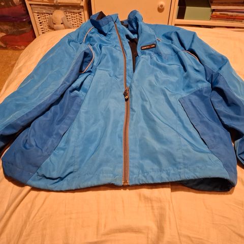 Hyväkuntoiset North Ice-merkkiset kuoritakki ja -housut. Takissa on irroitettava huppu. Edessä on kaksi isoa taskua ja sisäpuolella vetoketjullinen rintatasku. Helma on säädettävä. Housuissa on tarrakiinnityksillä säädettävä vyötärö. Koko on 150cm.