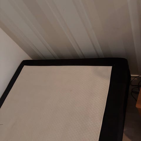 Siisti 120*200 runkopatja tummanharmaalla kankaalla. Yhdessä kulmassa repeämä mutta ei haittaa käyttöä. Meillä ollut tuo kulma seinää vasten niin ei näy. Jouset hyvässä kunnossa. Jotain jälkeä pinnassa näkyy mikä ei puhdistamalla lähtenyt, mutta ei mitään häiritsevää.