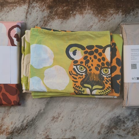 Marimekon Siirtolapuutarha pussilakanat ja tyynyliinat, 2 settiä.