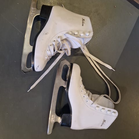 Naisten "Lady" taitoluistimet koko 39. Valkoiset. Toisesta luistimesta puuttuu nauhat. Käytön jälkiä mutta hyvässä kunnossa. Kaunoluistimet.