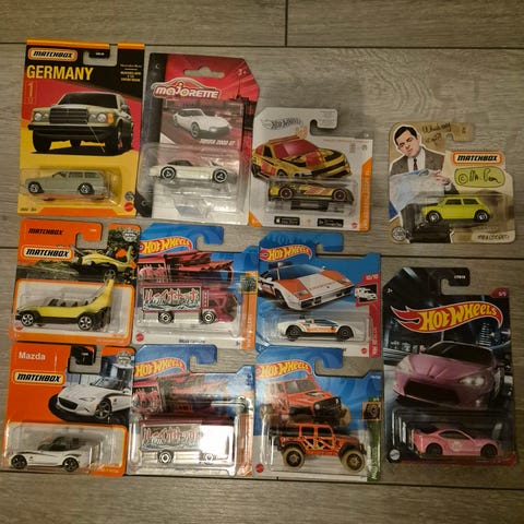 Matchbox ja Hot Wheels pienoismalli-autot pakettina. Useita eri henkilöautojen valumalleja alkuperäisissä myyntipakkauksissaan. Soveltuvat leikkeihin tai kokoelmakäyttöön. Koko noin 1:64 -mittakaavan pikkuautot, materiaalina pääosin metalli ja muovi. Myydään yhtenä eränä kuvien mukaisesti. EI ERIKSEEN!