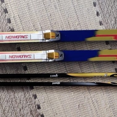 Hyvät Atomic perinteisen sukset, Salomon monot koko 44, ja sauvat. Vähän käytetyt. Sopiva paketti n. 175-180 pitkälle hiihtäjälle.
