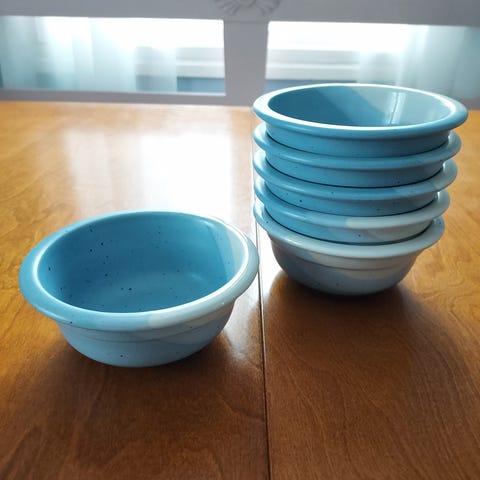 8 kpl sinisiä jälkiruokakulhoja. Nouto Kirkkonummelta.