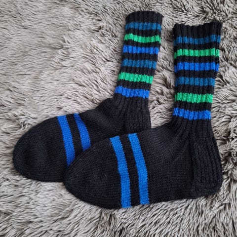 Napakasti neulotut villalangasta, jalkaterän pituus 28cm, nouto, maksu käteinen