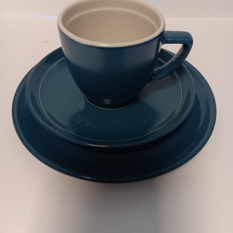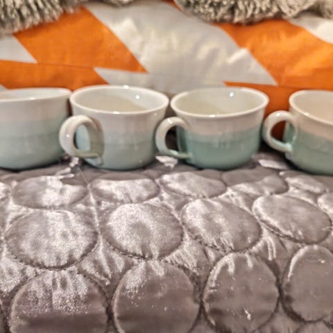 6 kpl. Väri: tummanruskea/kermanvalkoinen. Kork. 9 cm, halk. 8 cm, noin 2.5 dl. Muutaman kerran ollut käytössä.