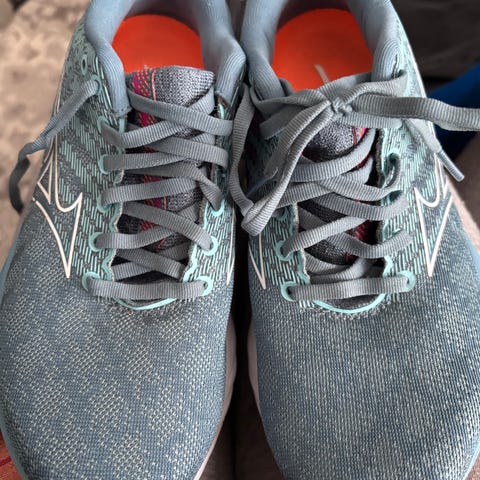 Mizuno Wave Daichi 7 GTX juoksukengät, koko EU 40,5. Väri punainen oransseilla yksityiskohdilla. Kengissä on Gore-Tex-kalvo (GTX) ja pitävä ulkopohja maastojuoksuun. Käytetty alle 70km.