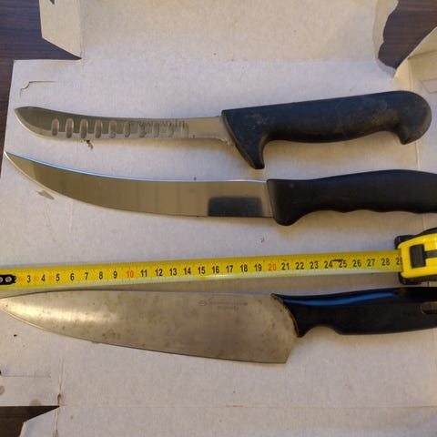 Iso kokkiveitsi saattaa olla jopa käyttämäton. Tästä halvalla toimivat veitset.Paimiossa, mutta posti kuljettaa. Kokkiveitsi todella tukeva ja painava. Vertailuksi Hackmannin veitsen paino.