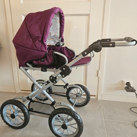 Myynnissä Brion duo -nukenrattaat kantopussilla ja säädettävällä työntöaisalla. Ehjät ja toimivat. Istuinosassa hieman tummentumaa. Säilytetty sisällä.