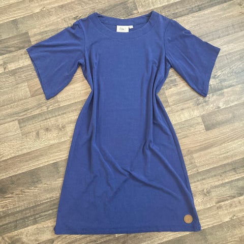 Blaa tunika/ mekko collegekangasta. Hauskat isot taskut. Hyväkuntoinen.