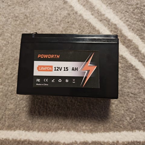 Kuvassa olevat todella kevyet (vain alle kilo..) LiFePO4 12V 15Ah li-ion akut ( 18860 battery back ). Akussa varaustilan näyttö, 2 x usb sekä 1kpl 5.5x2.1 pyöreä liitin virran ulostulolle ja virtakytkin.