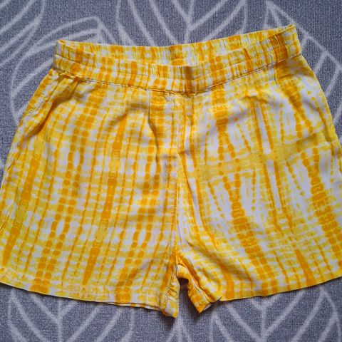 Bik Bok naisten shortsit, koko M. Housuissa kukallinen kuosi ja edessä kietaisuosa, joka saa shortsit näyttämään hameelta.