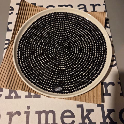 Marimekko Oiva Siirtolapuutarha 10th Anniversary lautanen kultareunuksella, Halk. 20cm. Käyttämätön.