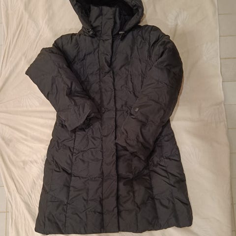 Joutsen Tauko naisten talvitakki, koko XS. Väri musta. Päällikangas polyamidia, toppaus untuvaa valmistajan merkintöjen mukaan. Takki on ihanan lämmin, siinä on etutaskut sekä nappi- ja vetoketjukiinnitys edessä. Helman ja hihansuiden leikkaus on suora. Kuvissa näkyy yksityiskohtia, taskujen etukankaassa pientä nirhaumaa joka ei suuressa kuvassa erotu. Huomioitu hinnassa.