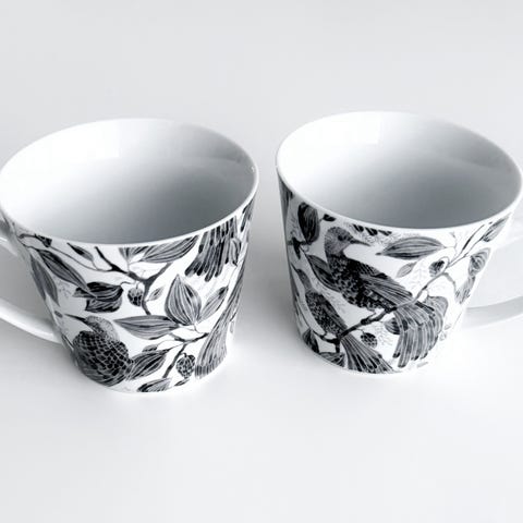 6 kpl kauniita korvattomia mukeja Elsa Boskown kuvituksella. Vähän käytettyjä. Kunto kuin uusi.