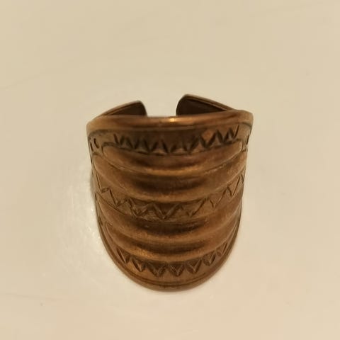 Vanha -90 luvun sormus. Pronssia. Ei paljon kulumaa, mutta puhdistettavaa. Koko n.18 mm. Säädettävä