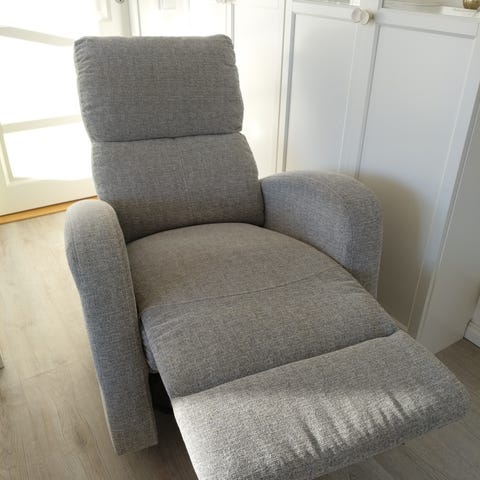 Siisti ja toimiva mekanismi lepotuoli myytävänä. Mekanismille ei ole vipuja vaan toimii henkilön painolla ja jalkavoimin. Kangas ehjä ja siisti. Ei hajuja.