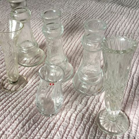9 kpl lasisia maljakoita. Ollut yksissä juhlissa käytössä. Myydään kaikki kerralla.