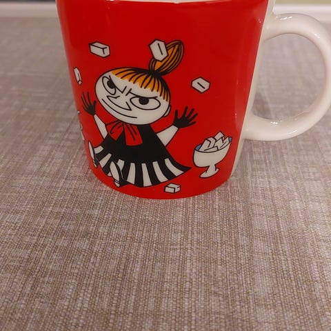 Arabia Pikku Myy punainen Muumimuki. Muki oli tuotannossa vuosina 2015-2021. Muki on käyttämätön eli uudenveroisessa kunnossa. Myydään Toridiilinä.