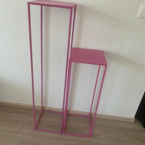 IKEA metallinen kukkateline vaalealla värillä. Korkea malli, jossa pyöreä jalusta ja integroituna pyöreä ruukkuosa kasville. Soveltuu sisäkäyttöön esimerkiksi viherkasveille tai kukille. Materiaali metallia, pinta maalattu. Seisoo lattialla kolmella ohuella jalalla, jotka yhdistyvät alaosassa pyöreään renkaaseen vakauden lisäämiseksi.