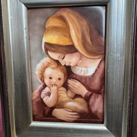 Ikonitaulu, Maria, Jeesuksen äiti. Leveys 23cm, korkeus 25cm. Takapuolelta koholla. Ehkä jonkinlaisella painatuksella tehty.