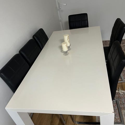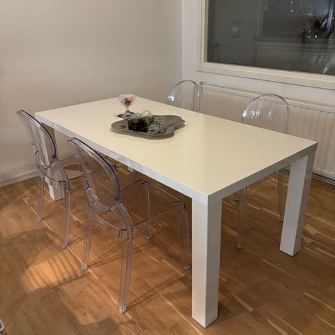 Valkoinen pöytä. Irrotettavilla metallijaloilla