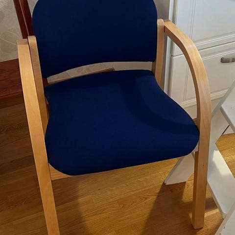 Hyväkuntoinen efg Olavi Taivalantti tuoli, kangasverhous ehjä, käsinojissa kaksi pientä kolhua. Kork 80, lev 58, syv 45 cm.