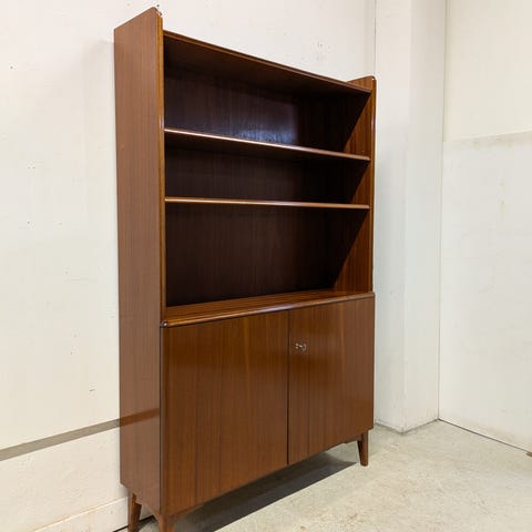 Vintage teak -kirjahylly 1960-luvulta. Tiikkiviilutettu, ajaton mid-century -design.