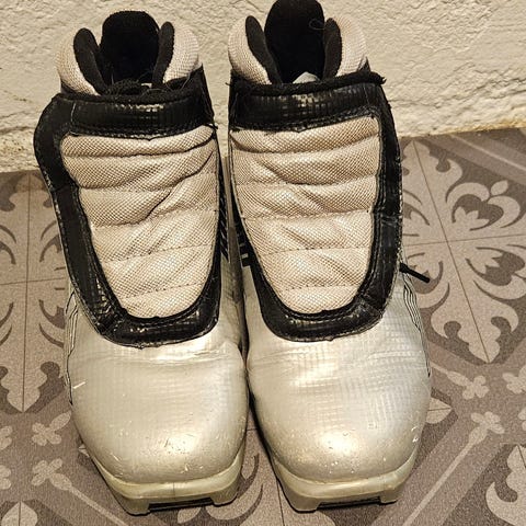 Meille uutena tulleen, parina talvena hiihdetty. Oikein siistit. Pohjallinen vastaa kooltaan aika tarkkaan esim. Fisher 35.