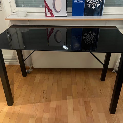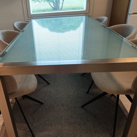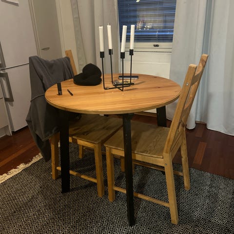 Valkoinen 120x120cm tukeva keittiön pöytä johon tilattu erikseen valkoinen lasipöydän pinnalle.