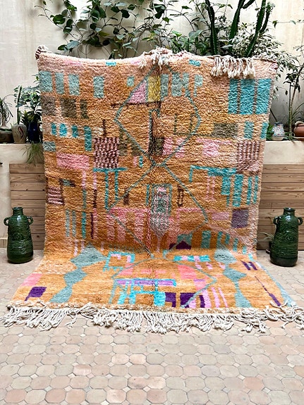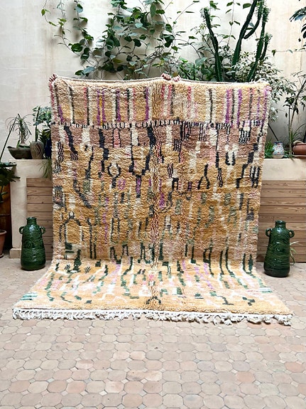 Mrirt-matot ovat uusien marokkolaisten mattojen parhaimmistoa. Materiaalina on sileä ja erittäin laadukas lampaanvilla. Mrirt-alueen lampaat laiduntavat vapaaasti korkealla vuoristossa. Kylän naiset solmivat paikallisesta erityisestä villasta upeita taideteoksia. Matto näyttää lattian lisäksi upealta suuremmalla seinällä. Koko noin 400x300cm+ ja hapsut perinteen mukaan toisessa päässä, eli siellä minne matto päätetään. Matto on käyttämätön.