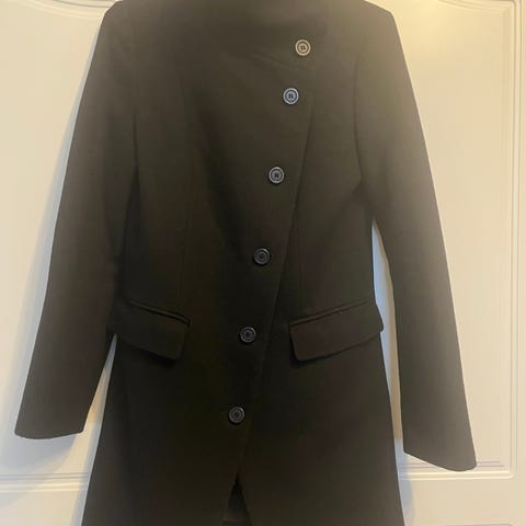 Vila pitkä naisten takki, koko 36. Väri musta. kaksisuuntainen vetoketju. toisen taskun vetoketju ei toimi.