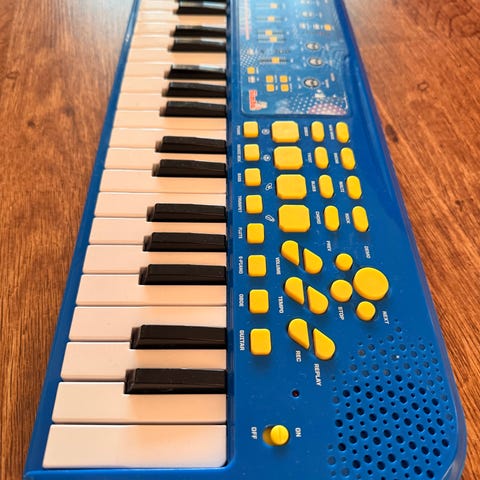Super Concert lasten sähköpiano. Soittimessa on mustavalkoiset koskettimet, kaksi kaiutinta ja kantokahva. Yläosassa on useita eläinhahmonäppäimiä, joista saa erilaisia ääniä ja melodioita. Erillisillä painikkeilla voi valita eri soitinääniä, taustarytmejä, kappaleita, tempon ja äänenvoimakkuuden sekä tallennus- ja toistotoiminnon. Paristokäyttöinen lelu sopii musiikista kiinnostuneille lapsille kotikäyttöön. Hinta 5 euroa
