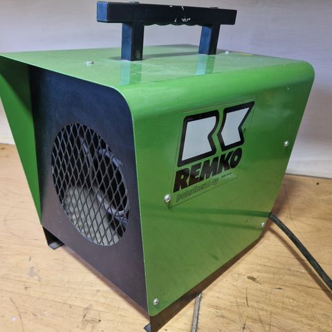 Remko Elkomat 18 sähkölämmitin. Teollisuus- tai työmaakäyttöön soveltuva lämmitin. Päällepäin ei enää näyttelykuntoknen ja puhaltimen kytkin ainoastaan on/off, eli puhaltaa kaikissa asennoissa samalla ilmavirtauksella. Muuten tuntuisi olevan ok. Huom! 32A pistoke.