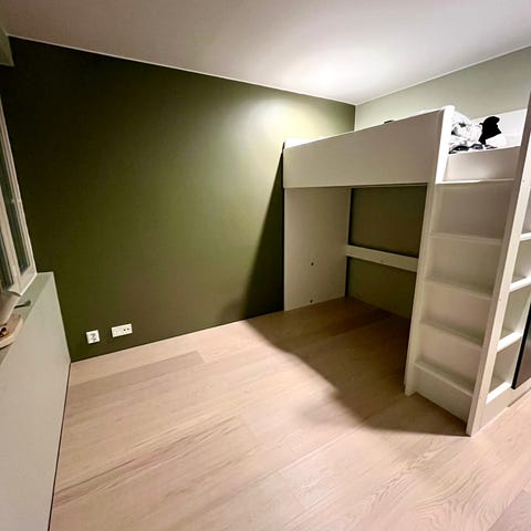 IKEA parvisänky, jossa alla kiinteä työpöytä, laatikosto ja kaapistot. Rakenne on valkoinen ja valmistettu puupohjaisesta levymateriaalista. Sängyn alle sijoittuva työpöytä tarjoaa tasotilan ja vetolaatikot säilytykseen. Sängyn sivussa on kaappi ja avohyllyjä, jotka soveltuvat vaatteiden, kirjojen tai muun tavaran säilyttämiseen. Kulku sänkyyn tapahtuu etusivulla olevia tikapuita pitkin. Kokonaisuus sopii tilaa säästäväksi ratkaisuksi esimerkiksi lasten- tai nuortenhuoneeseen.
