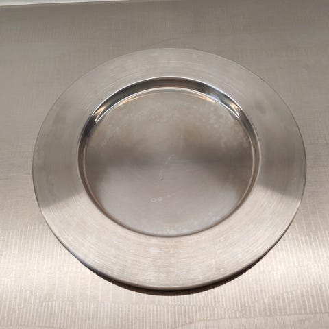 Sarpanevan teräksinen tarjoilulautanen. Halkaisija 33cm. Puhdistus jää ostajalle.