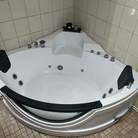 Medisana porematto. Tuote koostuu pitkänomaisesta, neliömäisistä ilmataskuista muodostuvasta matosta ja erillisestä ohjausyksiköstä, joka liitetään mattoon letkulla. Porematto on suunniteltu käytettäväksi esimerkiksi kylpyammeessa.